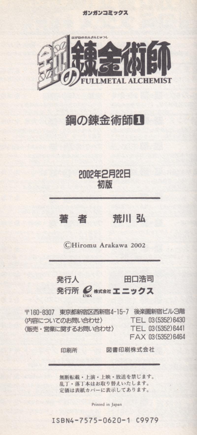 Issue: 鋼の錬金術師 [Hagane no Renkinjutsushi] [Fullmetal Alchemist] #1