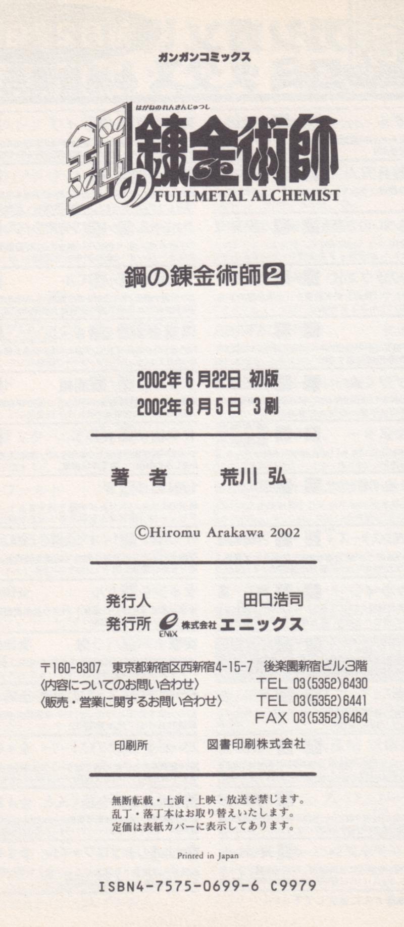 Issue: 鋼の錬金術師 [Hagane no Renkinjutsushi] [Fullmetal Alchemist] #2