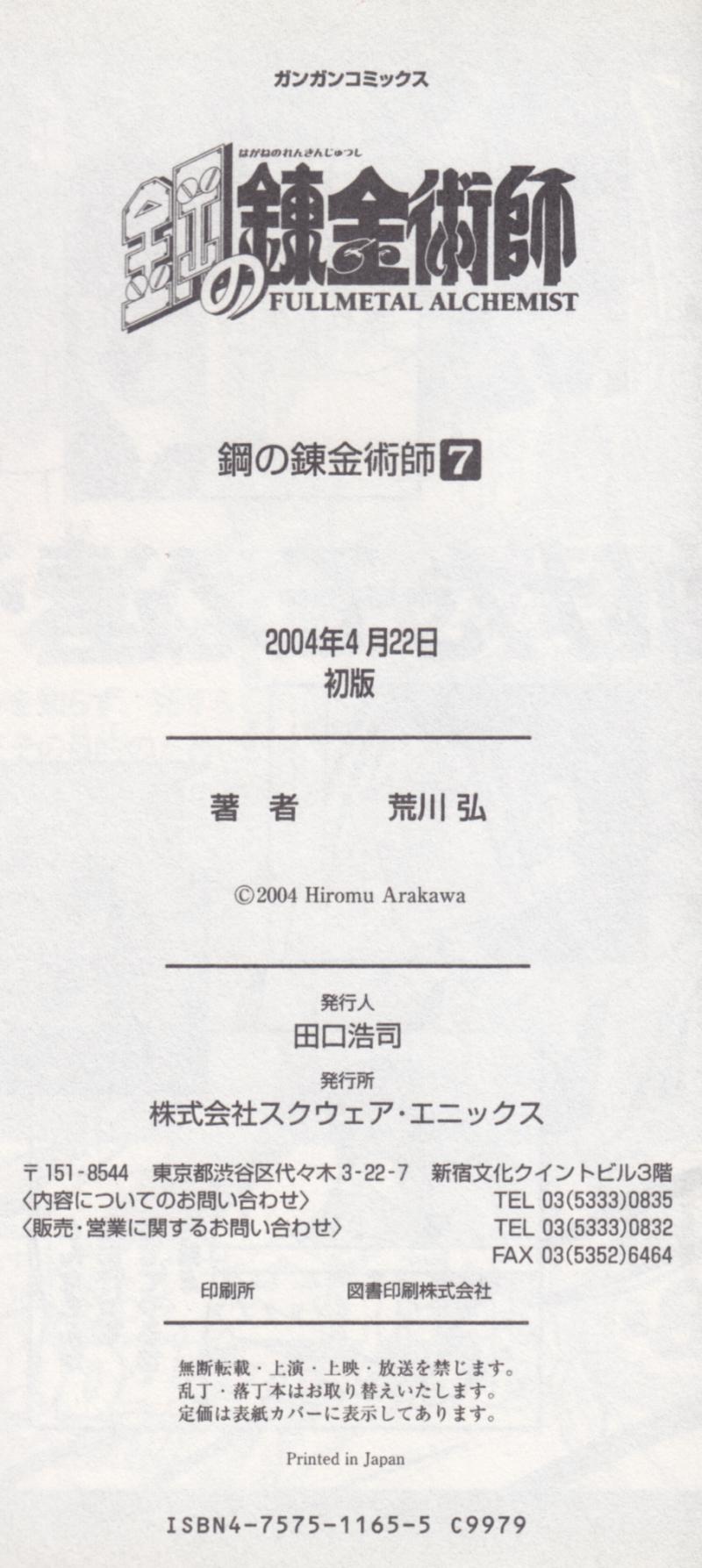 Issue: 鋼の錬金術師 [Hagane no Renkinjutsushi] [Fullmetal Alchemist] #7