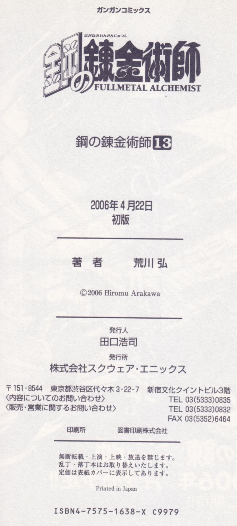 Issue: 鋼の錬金術師 [Hagane no Renkinjutsushi] [Fullmetal Alchemist] #13