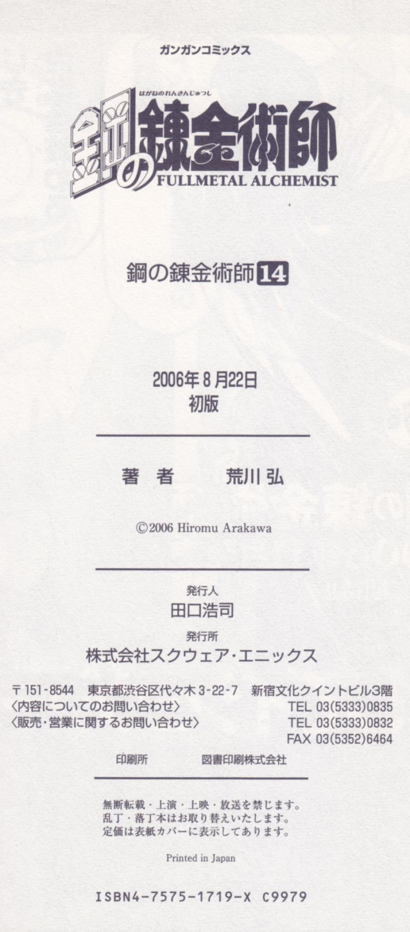 Issue: 鋼の錬金術師 [Hagane no Renkinjutsushi] [Fullmetal Alchemist] #14