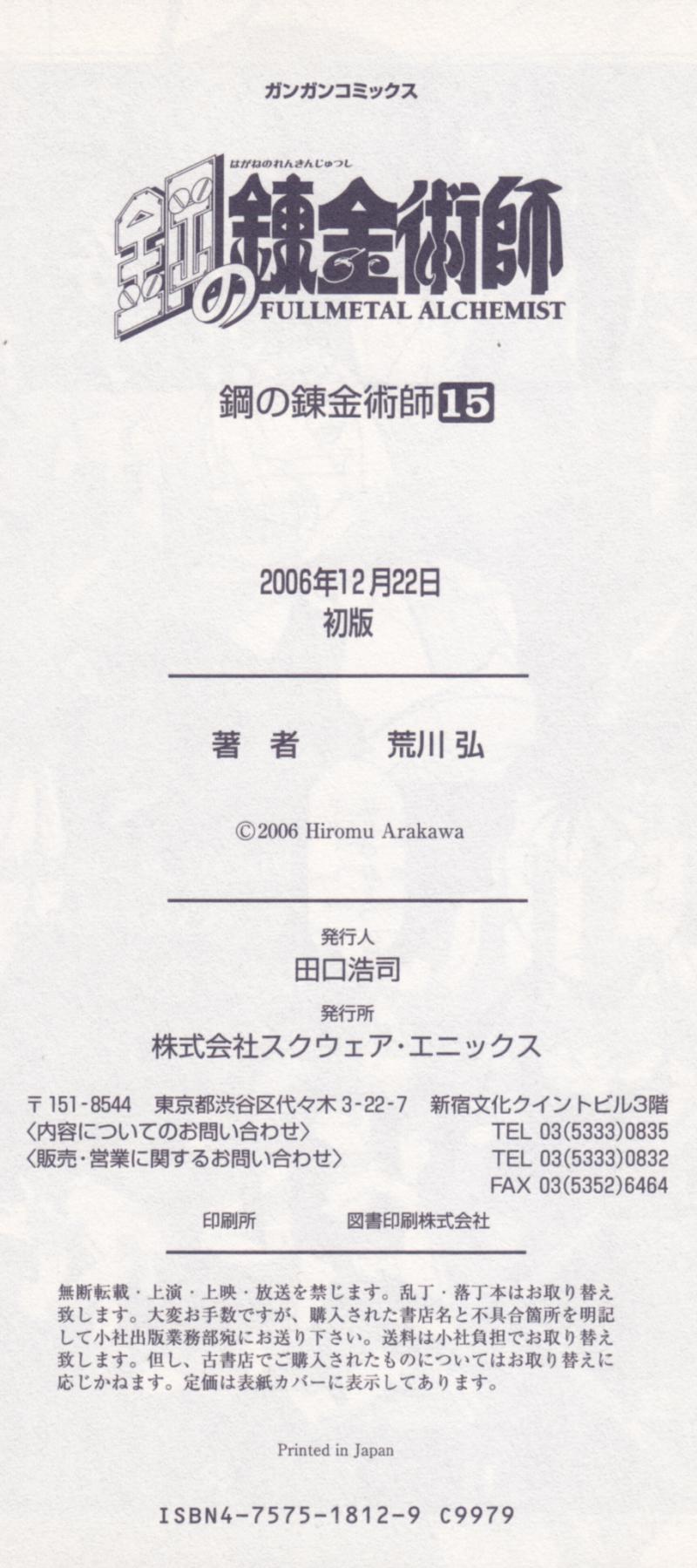 Issue: 鋼の錬金術師 [Hagane no Renkinjutsushi] [Fullmetal Alchemist] #15