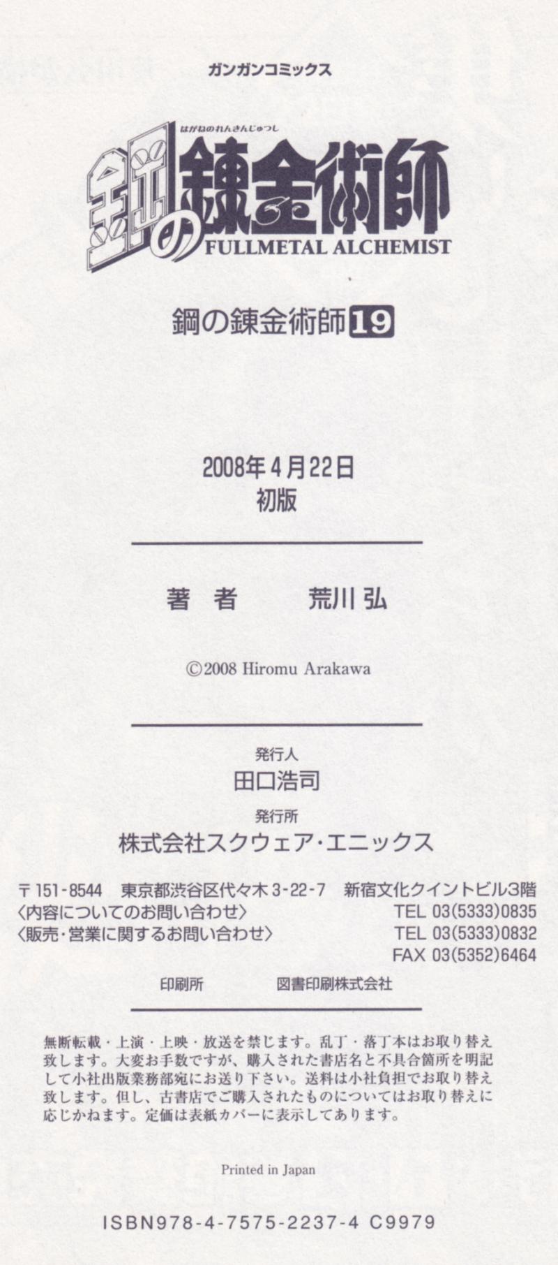 Issue: 鋼の錬金術師 [Hagane no Renkinjutsushi] [Fullmetal Alchemist] #19
