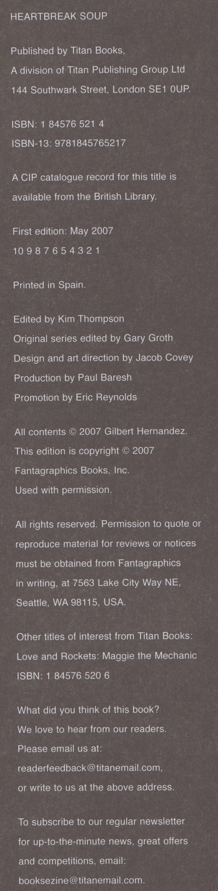 Indicia Publisher: Titan Books