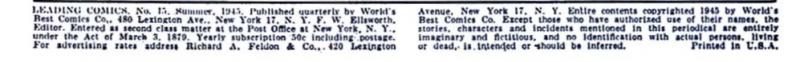 Disclose Notes: Published and (c) World's Best Comics Co. On-sale date from copyright registration.