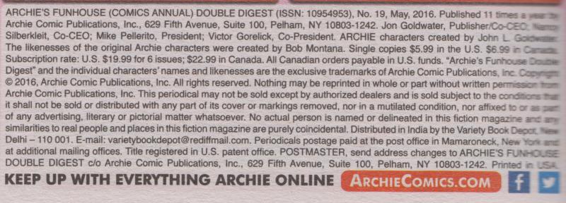 Indicia title: Archie's Funhouse (Comics Annual) Double Digest