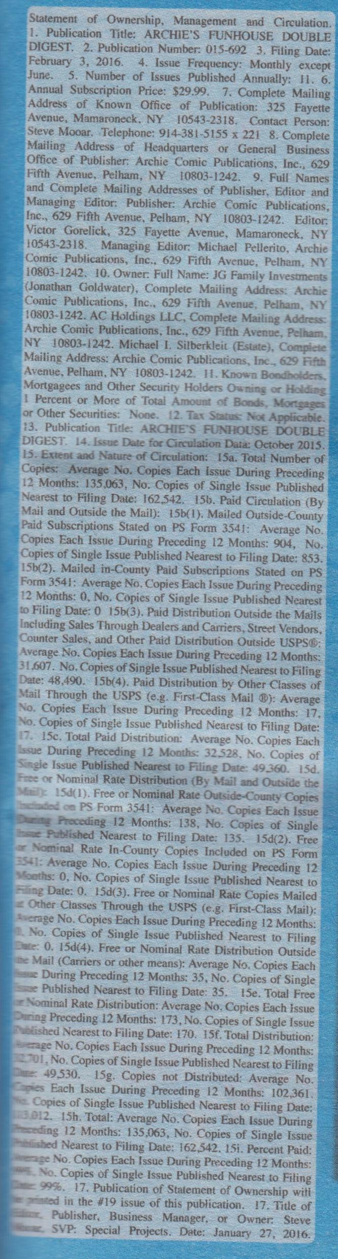 Indicia Publisher: Archie Comic Publications Inc.