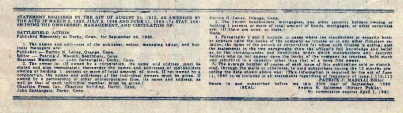 Indicia: BATTLEFIELD ACTION VOLUME 2, NUMBER 35 APRIL, 1961 Published Bimonthly by Charlton Comics Group. Executive offices and office of publication, Charlton Building, Derby, Conn. Second Class Mailing privileges authorized and postage paid at the Post Office at Derby, Conn. Price per copy 10¢. Subscription 6 issues 60¢. International copyright secured. All rights reserved. Pat Masulli, Executive Editor. This magazine has been produced and sold subject to the restrictions that it shall only be resold at retail as published and at full cover price. It is a violation of these stipulations for this magazine to be offered for sale by any vendor in a mutilated condition, or at less than full cover price. (Printed in U.S.A.)