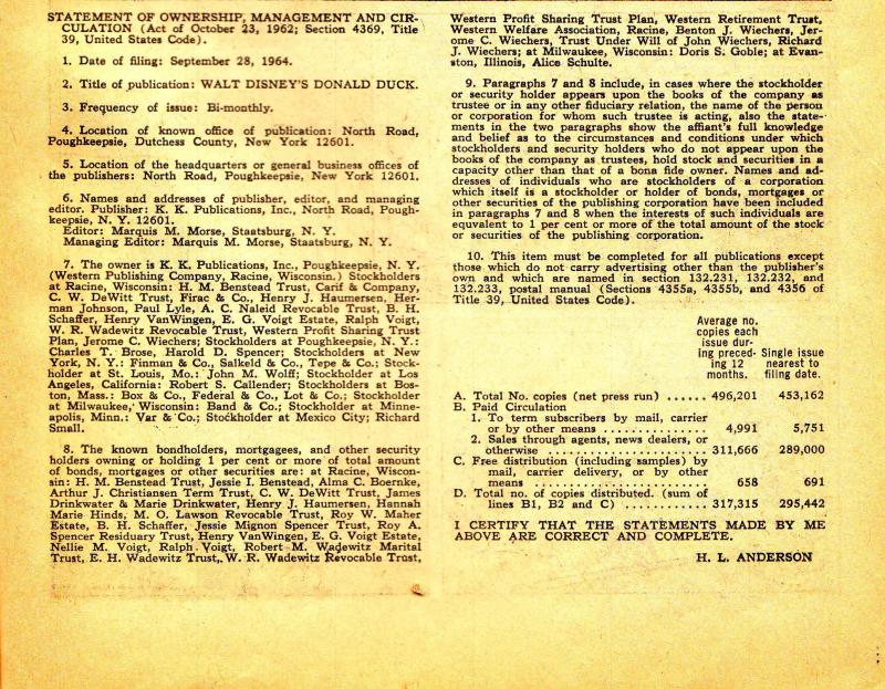 Disclose Notes: Cover code: 10037-503. On-sale date from 1965 Periodicals, Copyright Office, Library of Congress, listed as Walt Disney's Donald Duck.