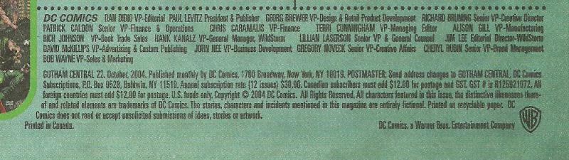 Indicia Publisher: DC Comics