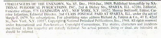 Issue: Challengers of the Unknown #65