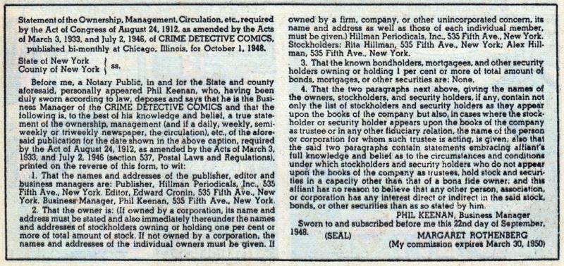 Indicia Publisher: Hillman Periodicals Inc.