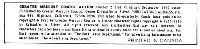 Indicia Publisher: Greater Mercury Comics