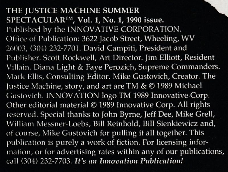Disclose Notes: Published between issues #3 and 4 of Justice Machine (Innovation, 1990 series).
