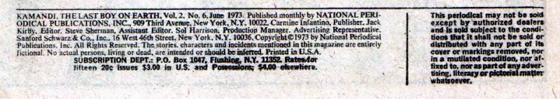 Indicia Frequency: Approved by the Comics Code Authority