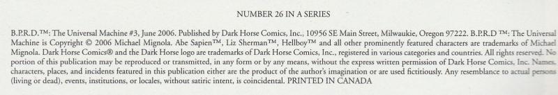 Disclose Notes: "Number 26 in a Series" per title page. Copyright 2006 Michael Mignola and printed in Canada per indicia.