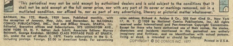 Issue: Batman #122 [Pizza Hut Collectors' Edition Vol. 1] #[nn]