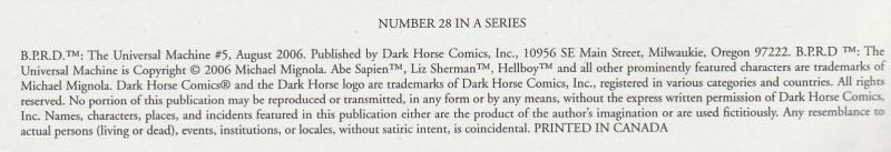 Disclose Notes: "Number 28 in a Series" per title page. Copyright 2006 Michael Mignola and printed in Canada per indicia.