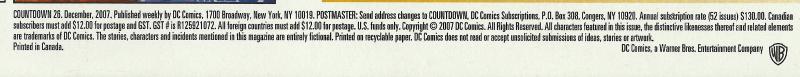 Disclose Notes: Cover title changes to Countdown to Final Crisis. Indicia title remains as Countdown.