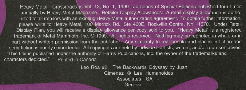 Indicia title is "Heavy Metal: Crossroads Special".