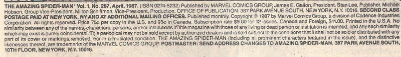 Issue: The Amazing Spider-Man #287