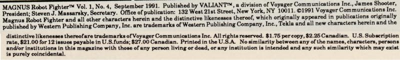 Indicia Publisher: Valiant
