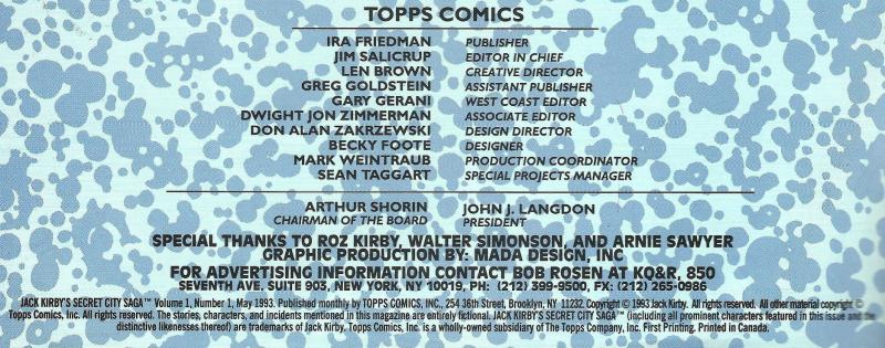 Indicia Publisher: Topps Comics Inc.