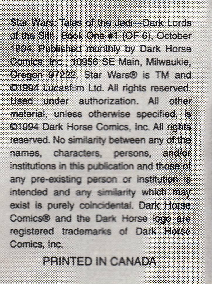 Issue: Star Wars: Tales of the Jedi - Dark Lords of the Sith #1