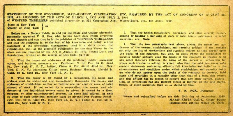 Indicia Publisher: Fox Feature Syndicate Inc.
