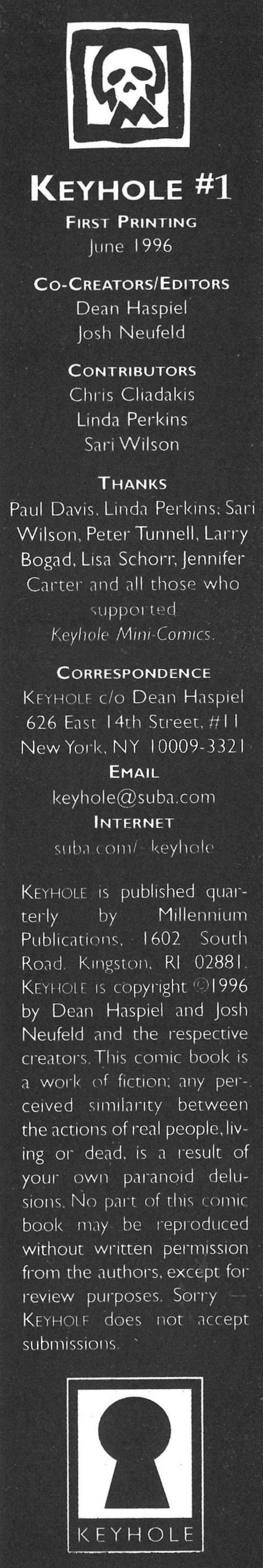 Disclose Notes: Keyhole was previously self-published as a mini-comic.