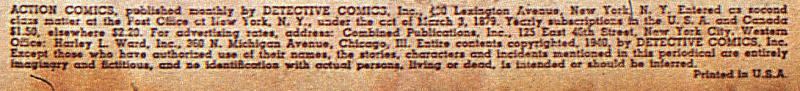 The on-sale date is the publication date reported in the U. S. Copyright Office filing in the Catalog of Copyright Entries, Part 2, Periodicals, New Series, Volume 35, 1940, Number 2. Class B periodical. Copyright number B 449540. The filing states that Detective Comics, Inc. is the publisher and copyright holder.