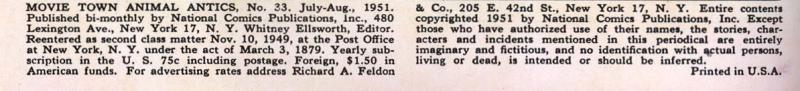 Disclose Notes: Indicia title: MOVIE TOWN ANIMAL ANTICS. On-sale date from copyright registration.