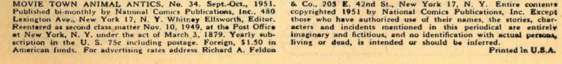 Disclose Notes: Indicia title: MOVIE TOWN ANIMAL ANTICS. On-sale date from copyright registration.