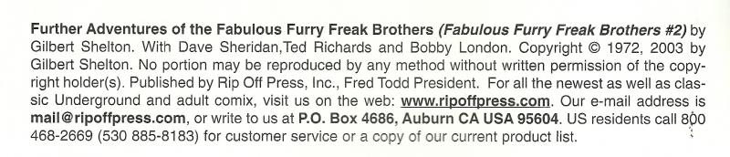 Disclose Notes: The indicia title for the issue is Further Adventures of Those Fabulous Furry Freak Brothers.