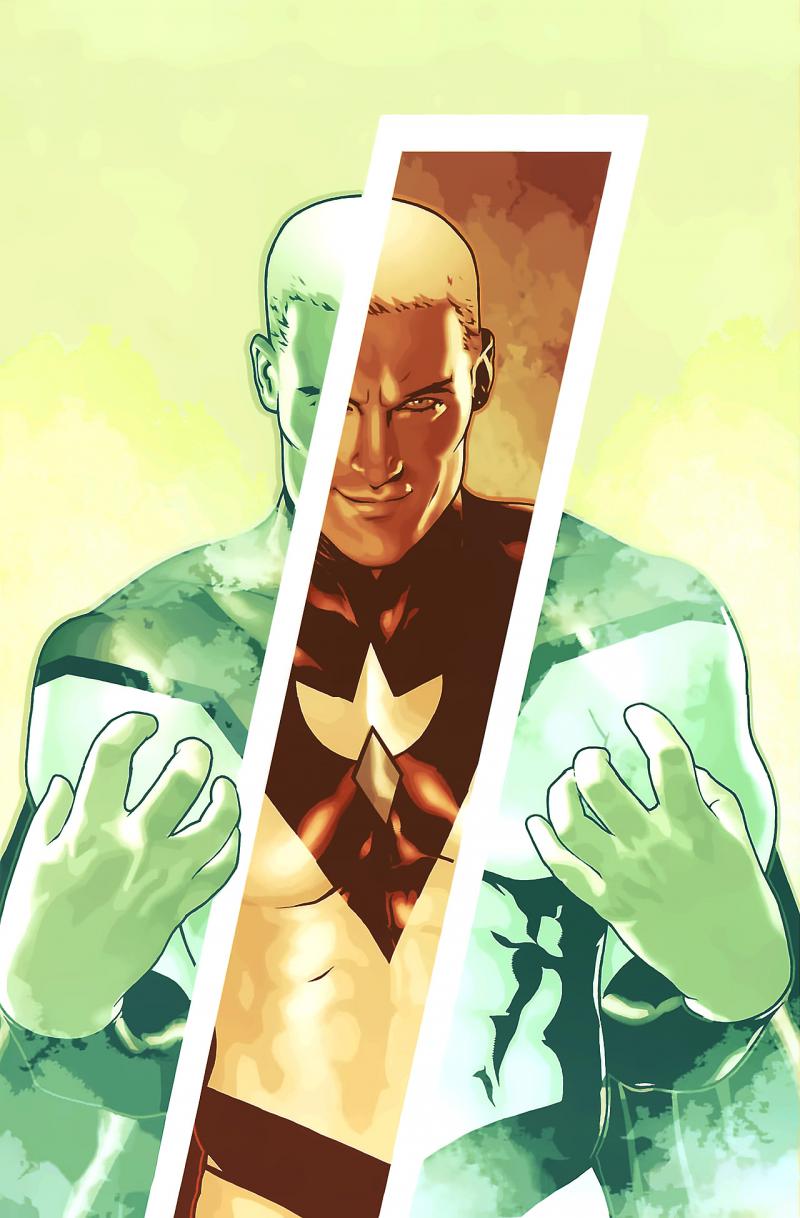 Per indicia: Copyright [2009] Boom! Studios. Spokes' variant covers to #1-12 will spell out "Irredeemable". This cover features the I. It was first offered to retailers as a 1-in-50 incentive signed by Mark Waid; unsigned copies were offered as a 1-in-20 incentive for the second printing of the issue. A "negative" variant using this cover's art also exists, as indexed below.
