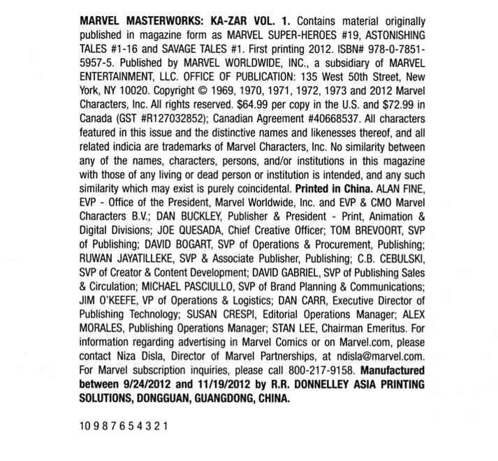 Issue: Marvel Masterworks: Ka-Zar #1 (190)