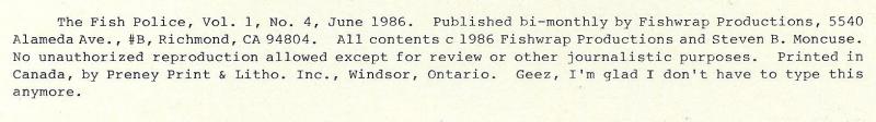 Indicia Publisher: Fishwrap Productions