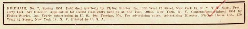Disclose Notes: Indicia title states "Firehair No. 7, published quarterly by Flying Stories, Inc."