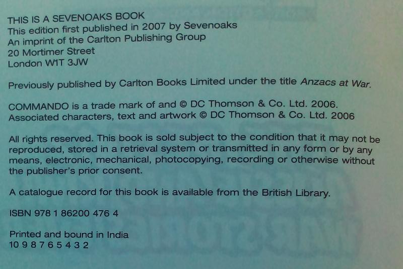 Disclose Notes: Previously published by imprint Carlton Books Limited under the title "Anzacs at War" - http://www.comics.org/issue/382625/.