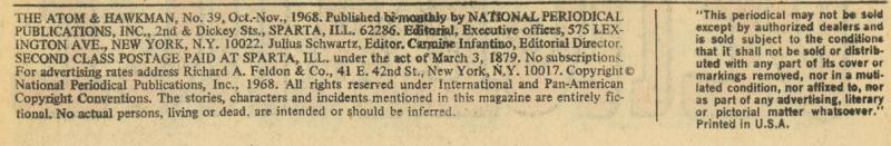 Disclose Notes: Combines Atom and Hawkman comics. Credits for pencils and inks confirmed from Julius Schwartz's editorial records, provided by DC Comics