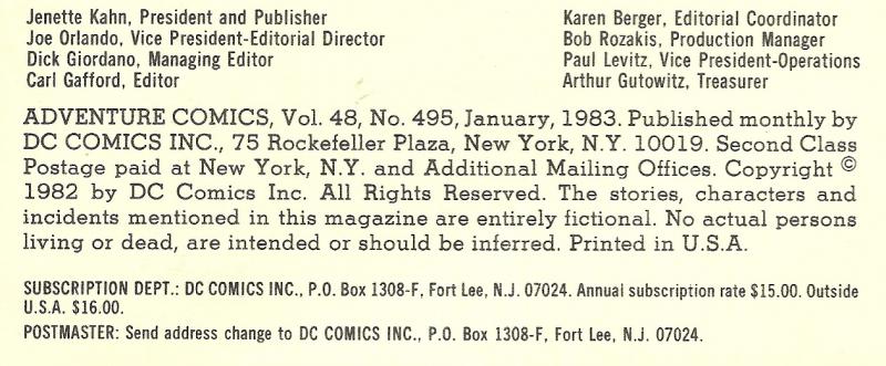 Indicia Frequency: Approved by the Comics Code Authority