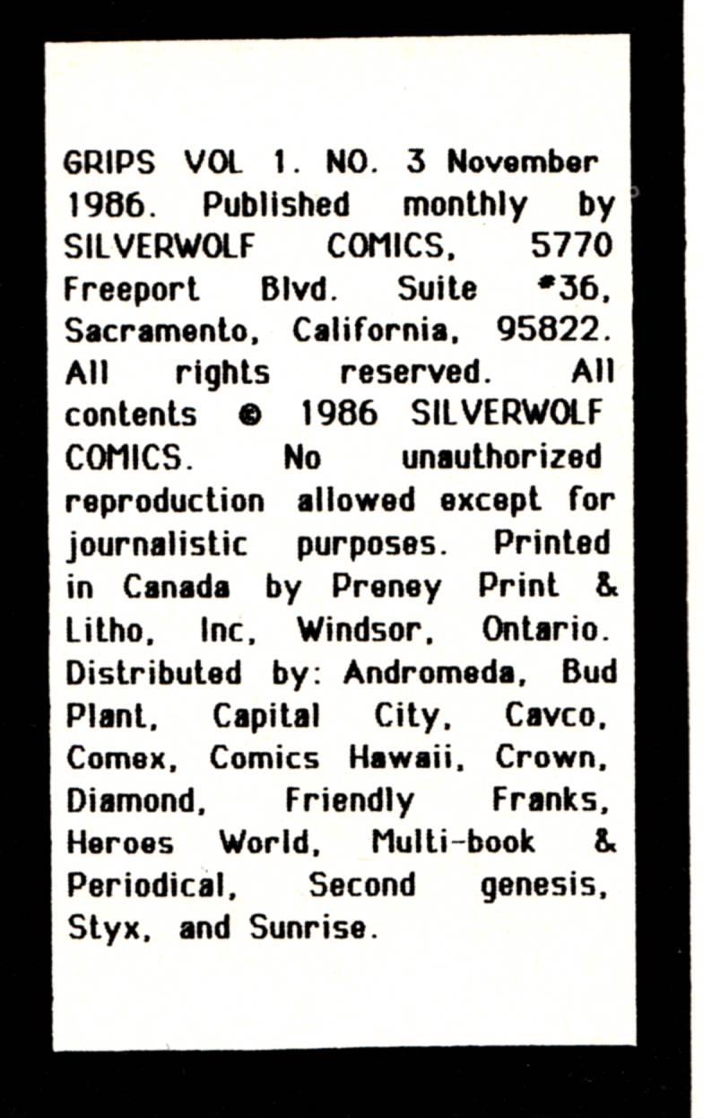 Indicia Publisher: Silverwolf Comics