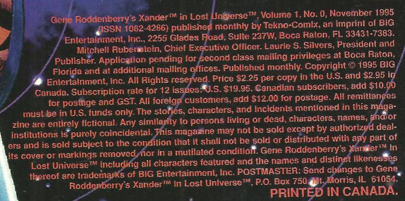 Issue: Gene Roddenberry's Xander in Lost Universe #0