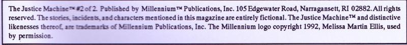 Disclose Notes: This is the last issue of Justice Machine published by Millennium Publications.