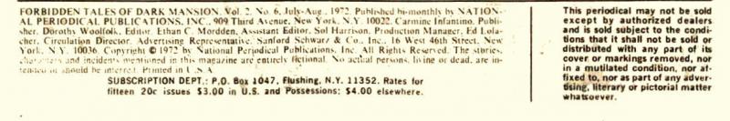 Indicia Frequency: Approved by the Comics Code Authority