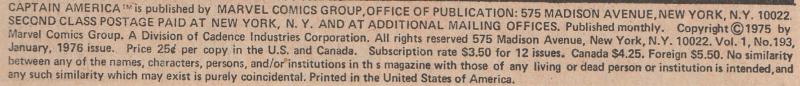 Disclose Notes: The beginning of Jack Kirby's 1970s run as writer and artist, which ends at Captain America #214. On-sale date from Comic Reader (Street Enterprises, 1973 series) #123, October 1975.
