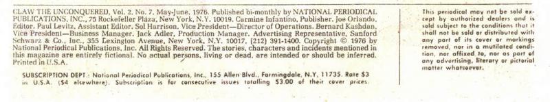 Indicia Frequency: Approved by the Comics Code Authority