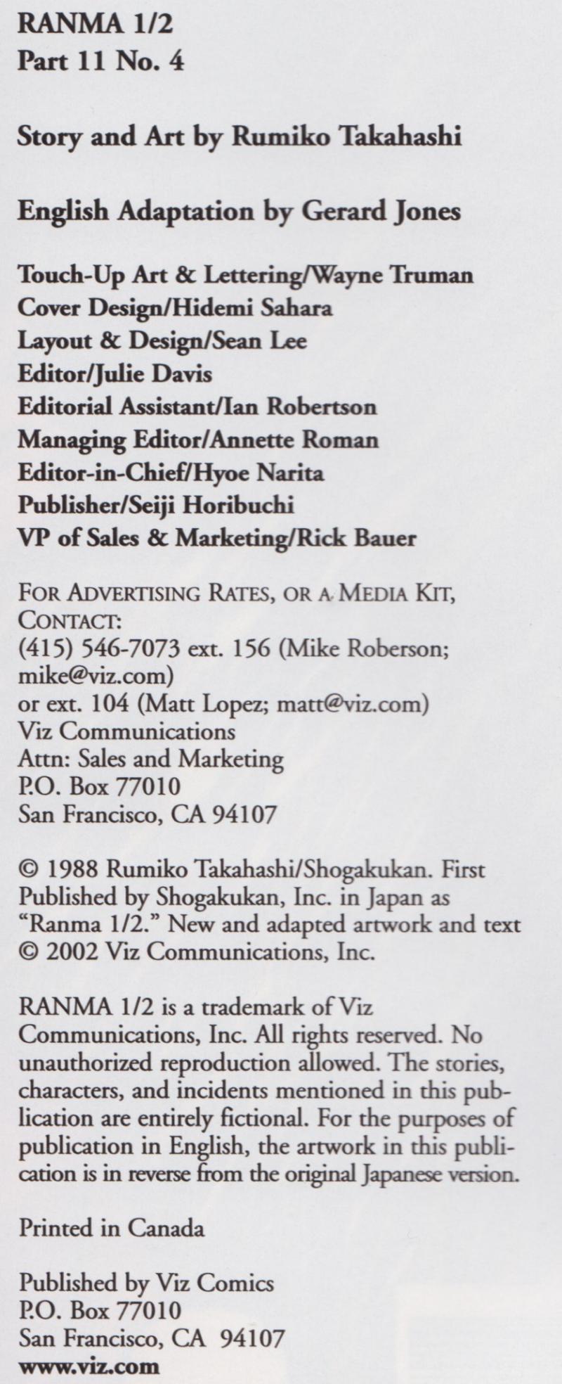 Julie Davis; Ian Robertson (Editorial Assistant); Annette Roman (Managing Editor); Hyoe Narita (VP of Editorial); Seiji Horibuchi (Publisher); Rick Bauer (VP of Sales & Marketing)