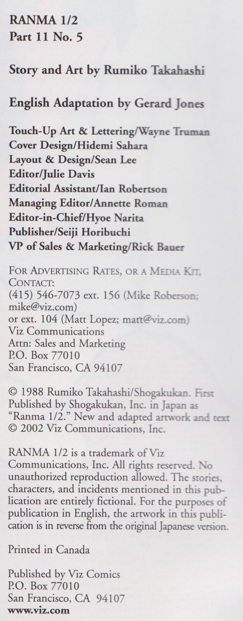 Julie Davis; Ian Robertson (Editorial Assistant); Annette Roman (Managing Editor); Hyoe Narita (VP of Editorial); Seiji Horibuchi (Publisher); Rick Bauer (VP of Sales & Marketing)