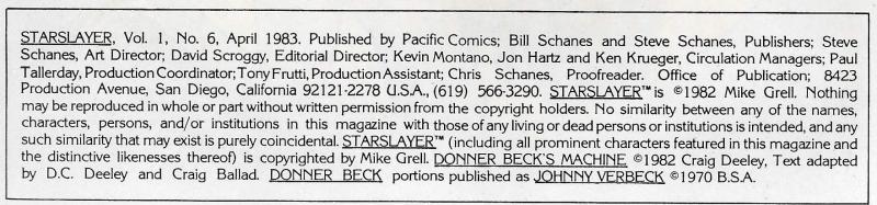 Indicia Publisher: Pacific Comics
